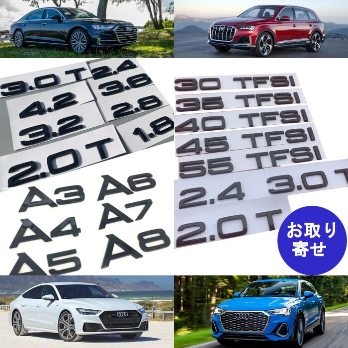 バッジ エンブレム Audi 2.4 2.8 3.2 3.6 4.2 1.8T 3.0T 3.0TFSI 3.5TFSI 4.0TFSI 4.5TFSI 5.0TFSI 5.5TFSI A3 2.0T A4 A5 A6 A7 A8 Q3 Q5 Q7 アウディ